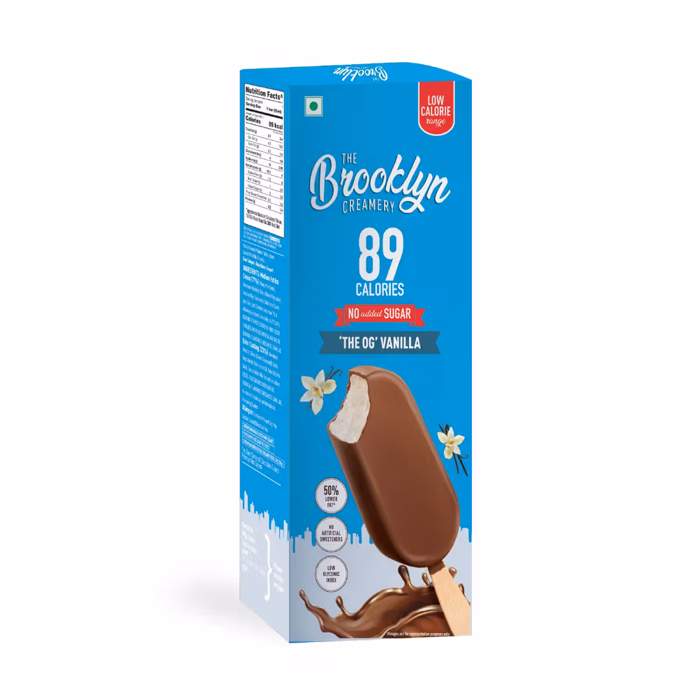 Low calorie, no added sugar, 50% lower fat, plant-based sweetener