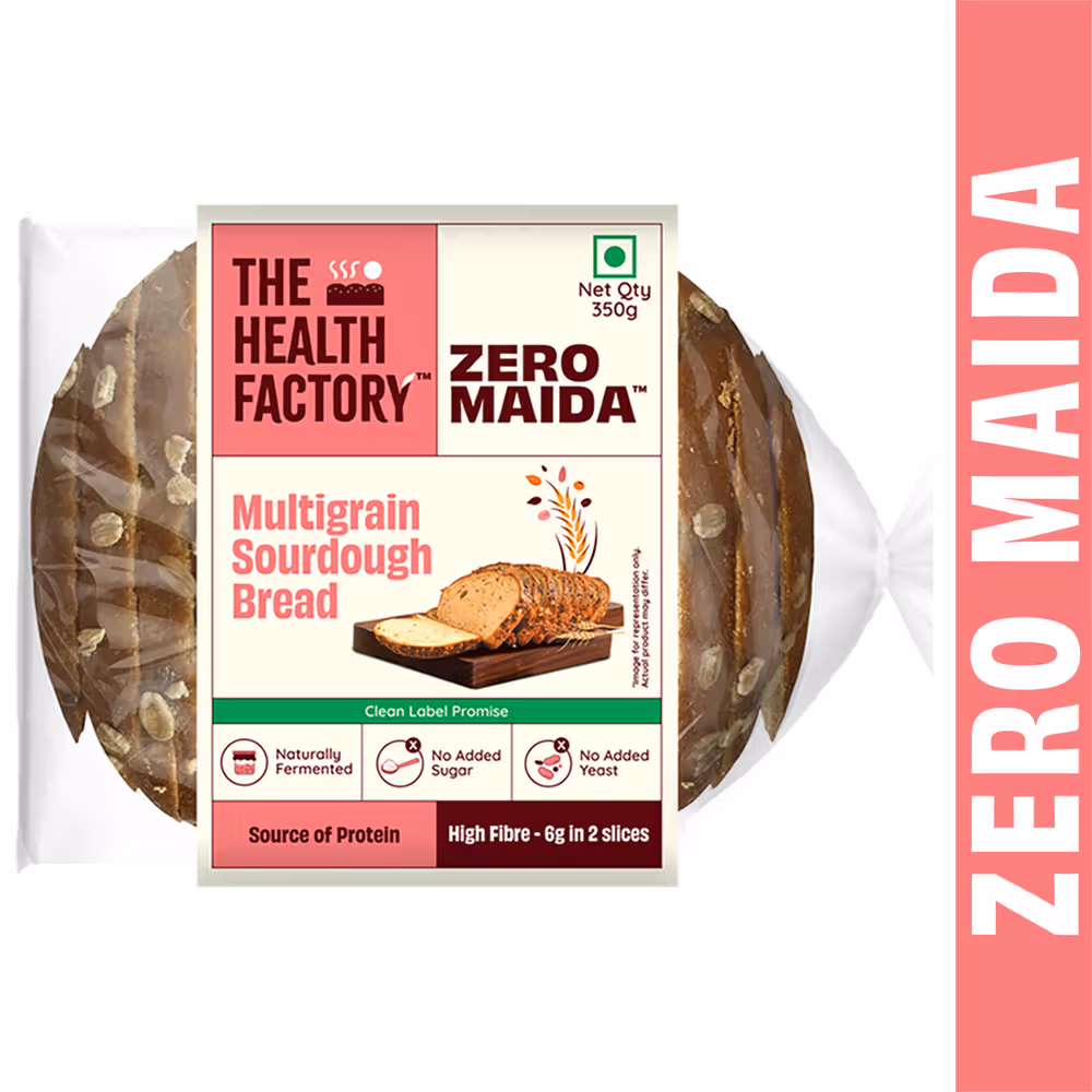 Enjoy the Health Factory Zero Maida Multigrain Sourdough, a wholesome bread with the goodness of multigrains, perfect for a healthy and delicious meal option