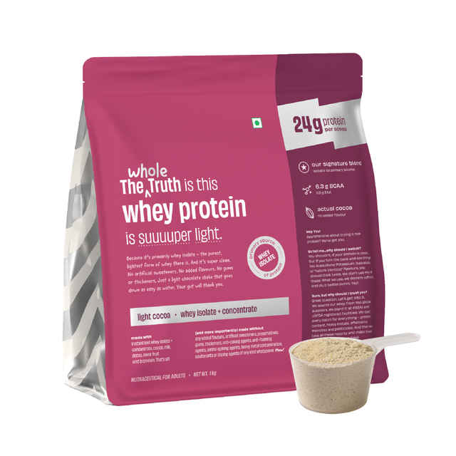 The Whole Truth Whey Protein Powder | Light Cocoa | 24g Protein Per Scoop