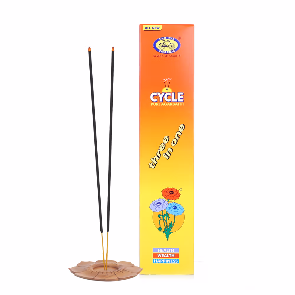 Cycle Three in One Agarbathis offer a blend of three unique fragrances, creating a serene and refreshing environment for prayer, meditation, and relaxation