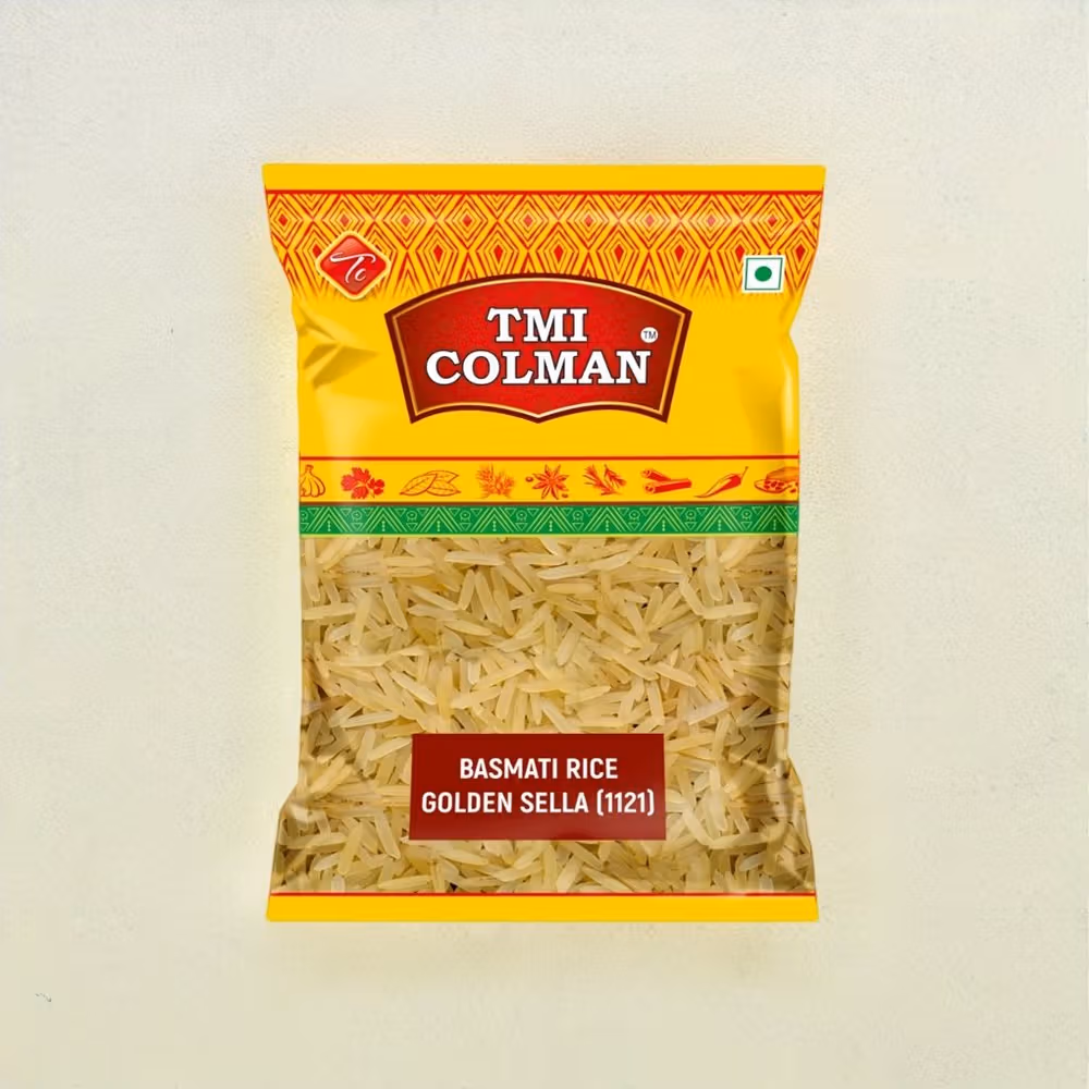 Premium golden sella basmati rice, long grain for fluffy texture, ideal for biryani and pulaos, sourced from India