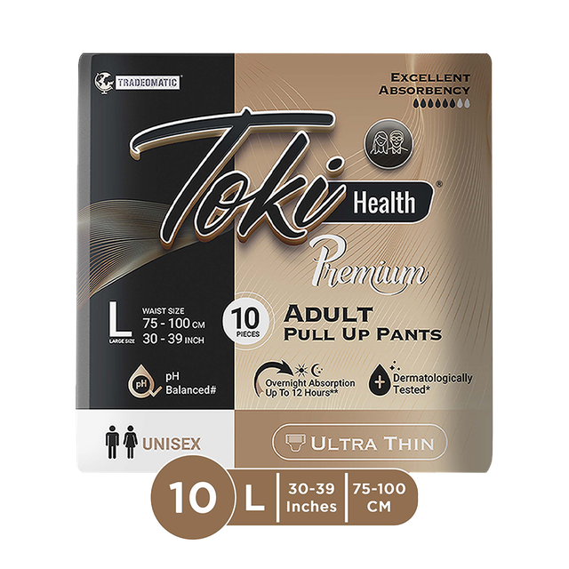 TokiHealth Ultra Thin Premium Pull Up Adult Diapers | Size L | Waist 30-39 Inches |Pack Of 10