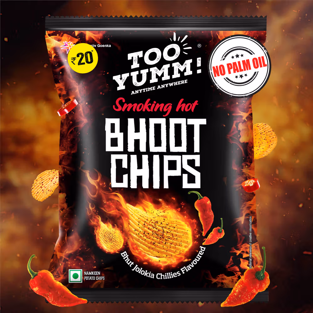 Spice meets crunch with bhoot karare, infused with bhut jolokia flavour. These crips are made with 60% less saturated fat and zero palm oil for a healthier kick. Perfect for adding a bold twist to your snacking routine