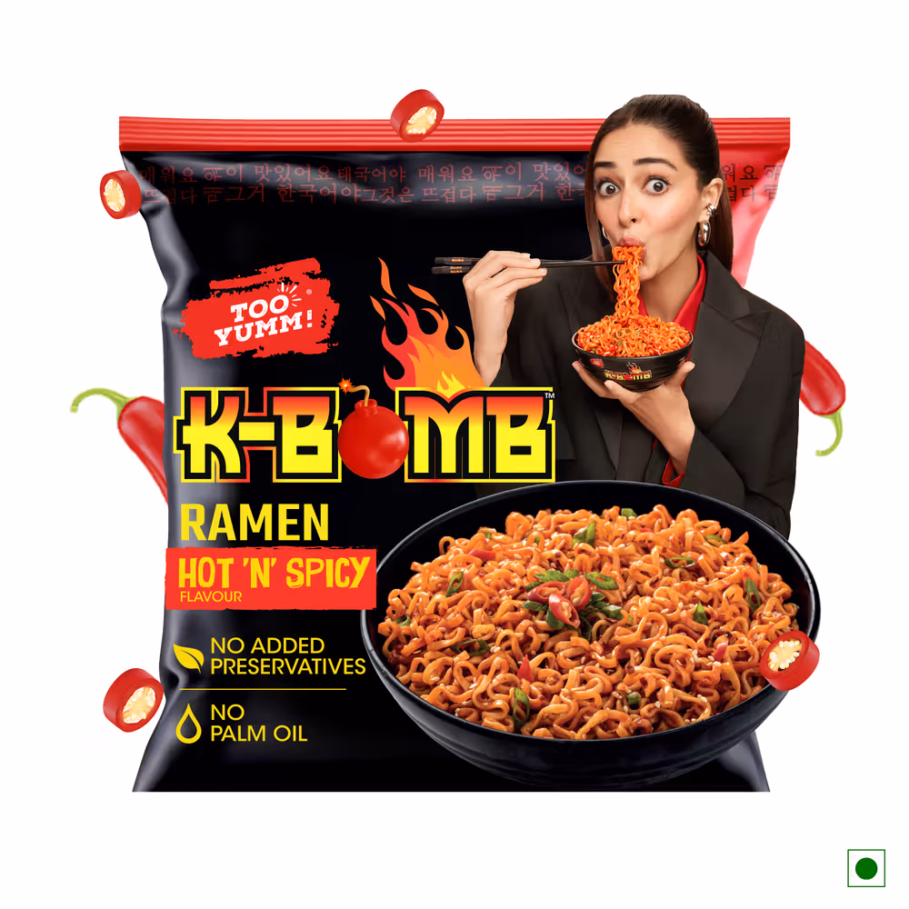 Boil 275 ml of water in a saucepan, Add K-Bomb Ramen Noodles and seasoning to the boiling water, Cook for 4 minutes, stirring occasionally, Serve hot and enjoy the bold, Too Yumm K-Bomb Ramen Hot n Spicy Instant Noodles