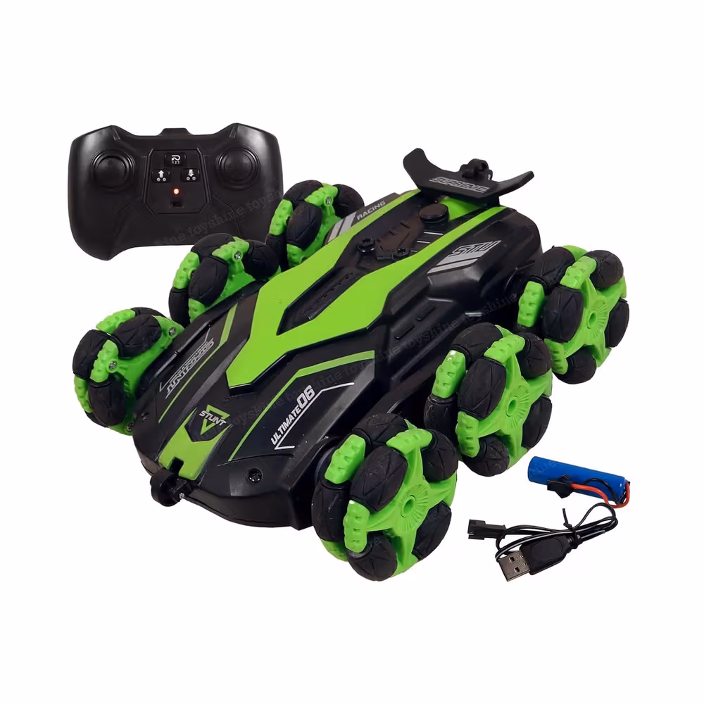 360-degree rotating stunt car, variable wheel geometry, 2.4GHz anti-interference control, six-wheel drive for stability