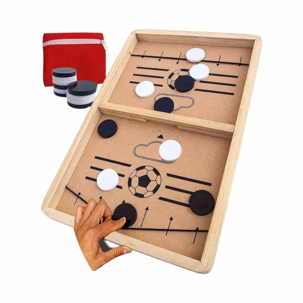 Eco-friendly pine wood construction, anti-slip puck design for better control, develops hand-eye coordination skills, perfect for family game nights