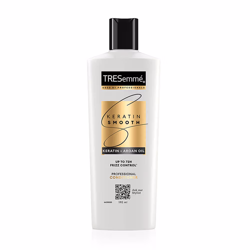 After shampooing, apply an adequate amount of Tresemme Keratin Smooth Conditioner from mid-lengths to the ends. Leave on for 2 - 3 minutes, then rinse thoroughly with lukewarm water. for best results, use with Tresemme Keratin Smooth Shampoo