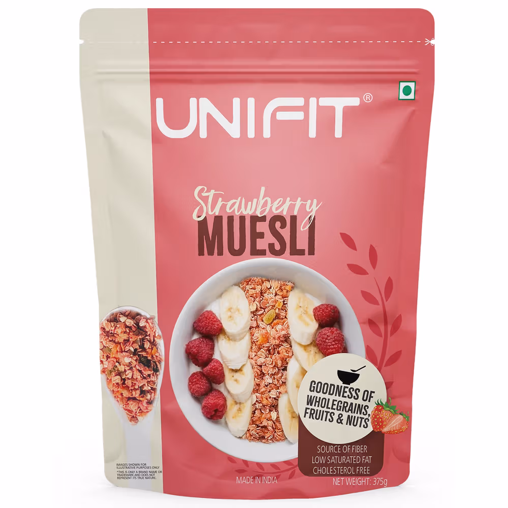 High in protein and fibre for daily nutrition, made with real strawberries for natural taste, perfect blend of wholegrains and dried fruits