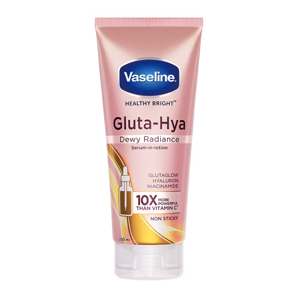GlutaGlow technology for brightening, hyaluron boosts moisture, niacinamide enhances radiance, non-sticky and easy absorption
