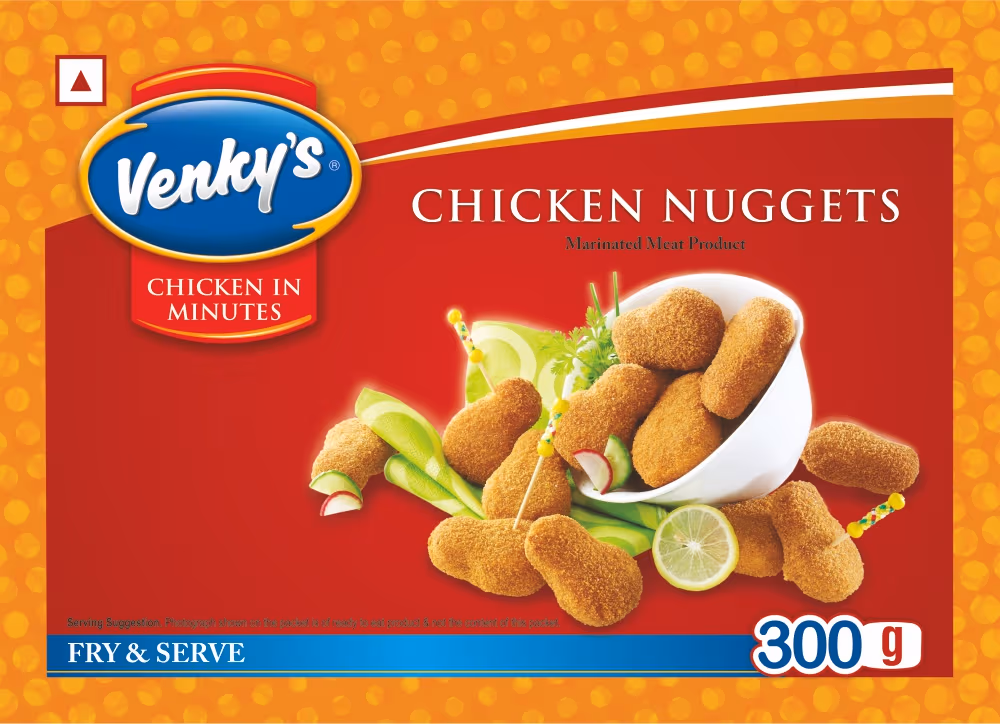 Heat sunflower oil in a pan to 180 degrees centigrade and gently drop Venky's Frozen Chicken Nuggets into it. Deep fry for 3 to 4 minutes until golden brown, rise to top achieves a minimum product temperature of 75 degrees centigrade