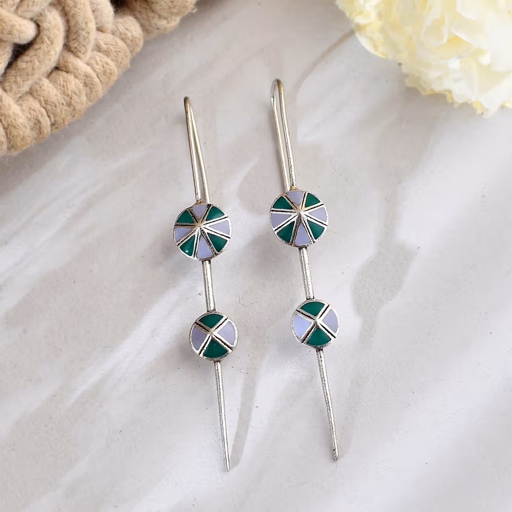 Inspired by African Zulu basket art, green and lavender enamel detailing, lightweight and comfortable design