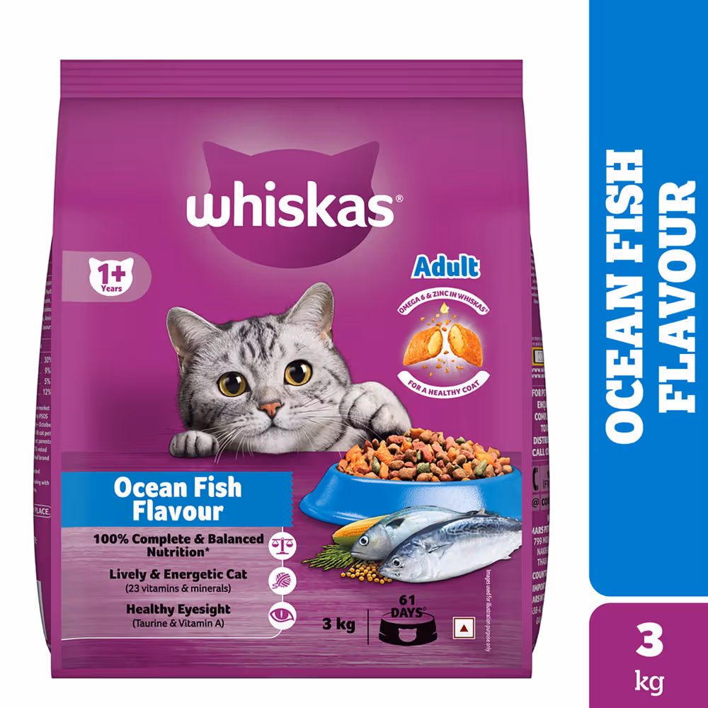 Cereals (Corn, Rice, and Wheat), Poultry and Poultry By-product, Oils, Soybean Meal, Fish Hydrolysed, Minerals, Corn Gluten Meal, Iodised Salt, Vitamins, Amino Acids, Colouring Agents, Preservatives, Flavours