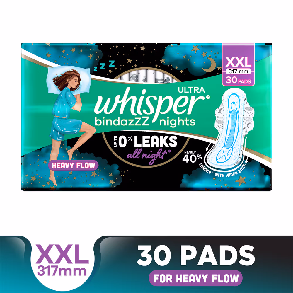 Up to 0% leaks all night long, nearly 40% longer with wider back, active odour lock technology, dri-weave cover absorbs in seconds
