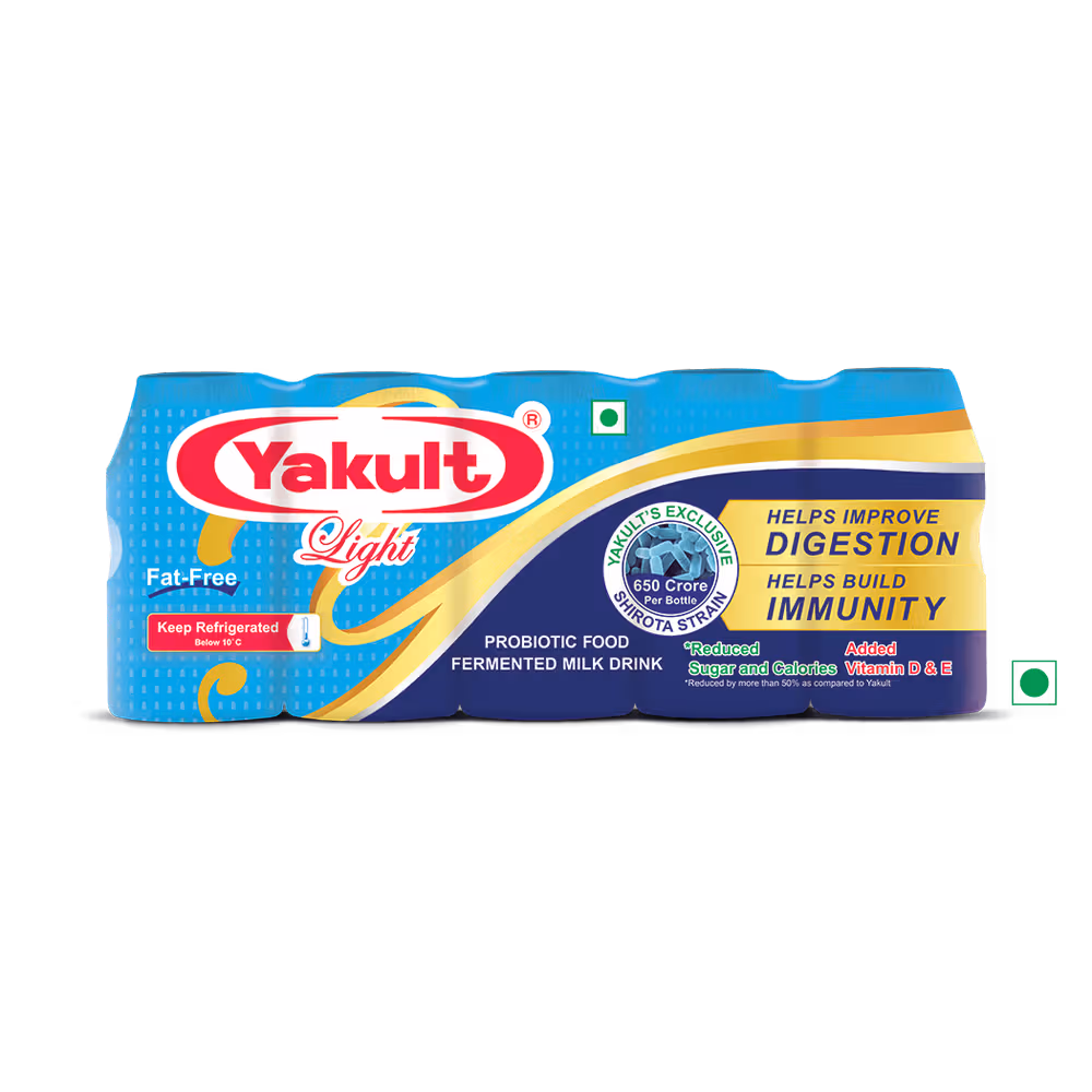 Water, Sugar, Skimmed Milk Powder, Glucose, Stabilizer (Pectin), Sweetener (Steviol Glycoside), Vitamin E, Vitamin D, Probiotic-Lactobacillus Casei Strain Shirota, and Contains Natural Identical Flavours