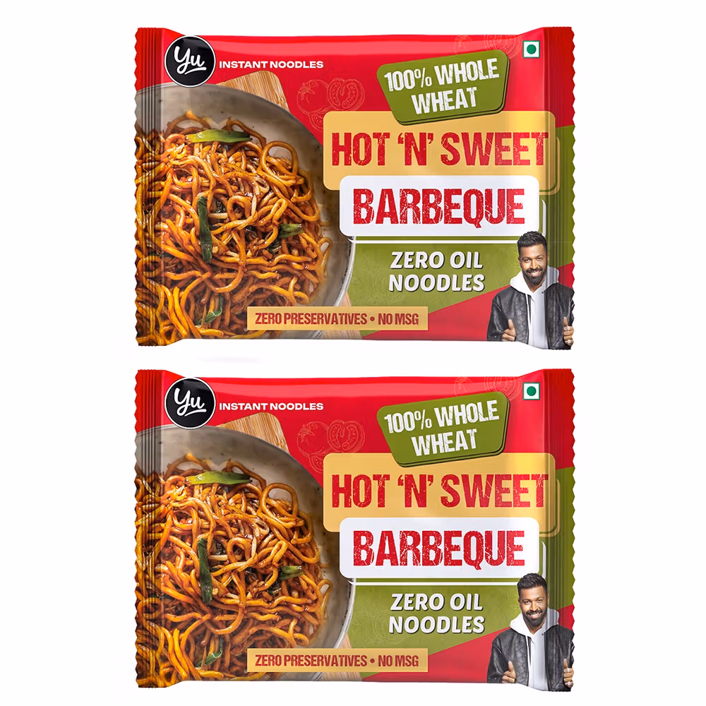 100% whole wheat noodles, zero oil and preservatives, hot 'n' sweet barbeque flavor, quick and easy preparation