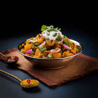 Aloo Chaat is a vibrant and spicy North Indian street food made of fried potatoes seasoned with spices and tamarind chutney, perfect for a tangy and savory snack.