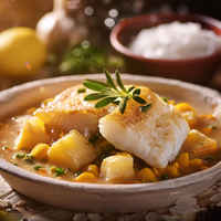 A traditional Spanish dish featuring salted cod in a rich and vibrant tomato and pepper sauce, often enjoyed during festive occasions.