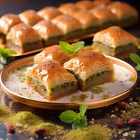 Baklava is a rich, sweet pastry made of layers of filo filled with chopped nuts, sweetened and held together with syrup or honey. It is a staple of Greek, Turkish, and Middle Eastern cuisines.