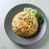 A quick and delicious Chinese dish that combines cooked rice with scrambled eggs, vegetables, and soy sauce.