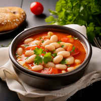 Fasolada is a traditional Greek white bean soup, often considered the national dish of Greece. It's a rich, vegetarian bean soup typically flavored with olive oil, vegetables, and herbs, making it a hearty and healthy option.