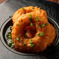 Medu Vada is a traditional South Indian snack known for its crisp exterior and soft interior. These doughnut-shaped fritters are made from urad dal and are typically served with coconut chutney and sambar.