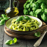A delightful blend of Italian pasta tossed in a rich and aromatic pesto sauce, garnished with parmesan cheese. Perfect for a quick meal.
