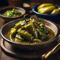 Pimientos de Padrón are small green peppers from Padrón, Spain. Sautéed until blistered, these peppers are a delightful mix of mild and occasionally spicy flavors, typically salted generously and served as tapas.