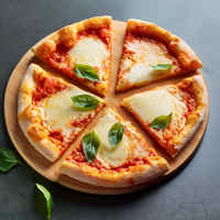 Pizza Margherita is a classic Italian dish featuring a simple, fresh combination of basil, mozzarella cheese, and tomatoes on a yeasty pizza crust topped with a drizzle of olive oil.