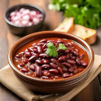Rajma, or kidney bean curry, is a popular North Indian dish consisting of red kidney beans in a thick tomato-based gravy, seasoned with fresh spices and herbs, commonly served with rice.