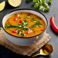 Rasam is a South Indian soup traditionally prepared using tamarind juice as a base, with the addition of tomato, chili pepper, cumin, pepper, and other spices as seasonings. It is eaten with rice or drunk as a soup.
