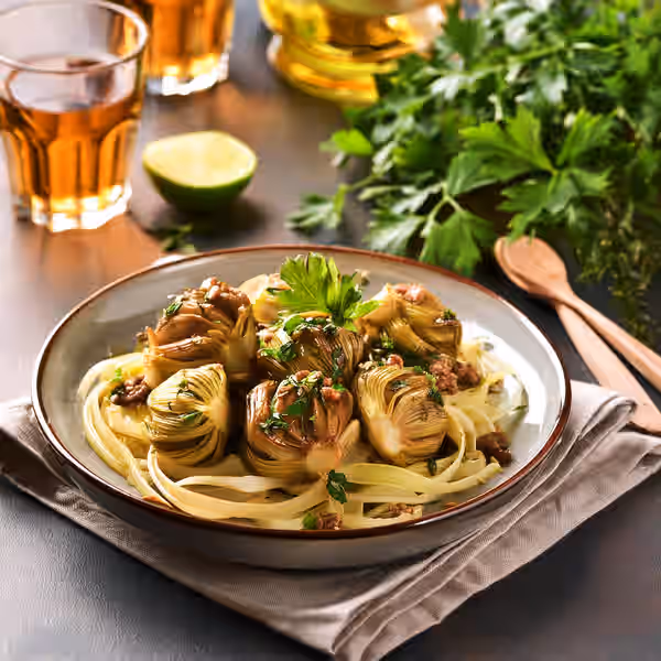 Roman Artichokes, or Carciofi alla Romana, are a traditional Italian dish featuring fresh artichokes stuffed with herbs and cooked to tender perfection. This delightful dish is aromatic and infused with flavors of mint, garlic, and lemon, making it a perfect side or main dish in a Mediterranean meal.
