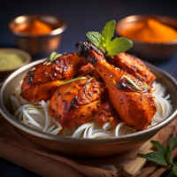 Tandoori Chicken is a popular Indian dish that consists of roasted chicken prepared with yogurt and spices. The name comes from the cylindrical clay oven, a tandoor, in which the dish is traditionally prepared.