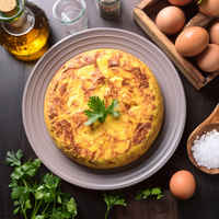 A traditional Spanish omelette combining potatoes and eggs, often flavored with onions, creating a thick, hearty dish that's satisfying at any time of the day.