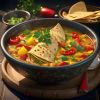 A hearty and flavorful Mexican soup made with crispy tortillas, fresh vegetables, and aromatic spices, perfect for any meal.