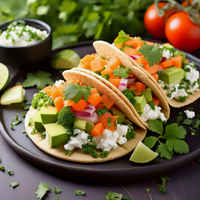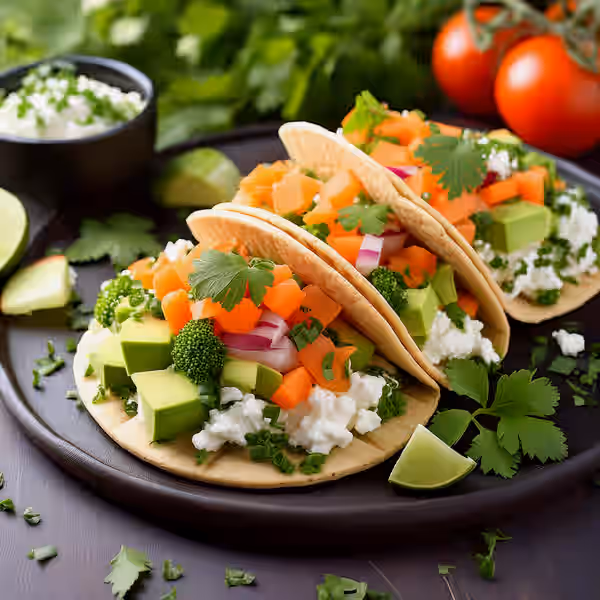 Crispy corn tortillas topped with refried beans, mixed vegetables, and a sprinkle of cheese, perfect for a quick meal or a tasty snack.