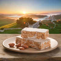 Turrón is a traditional Spanish confection made typically during Christmas, consisting of almonds, honey, and egg whites, with a firm, chewy texture.
